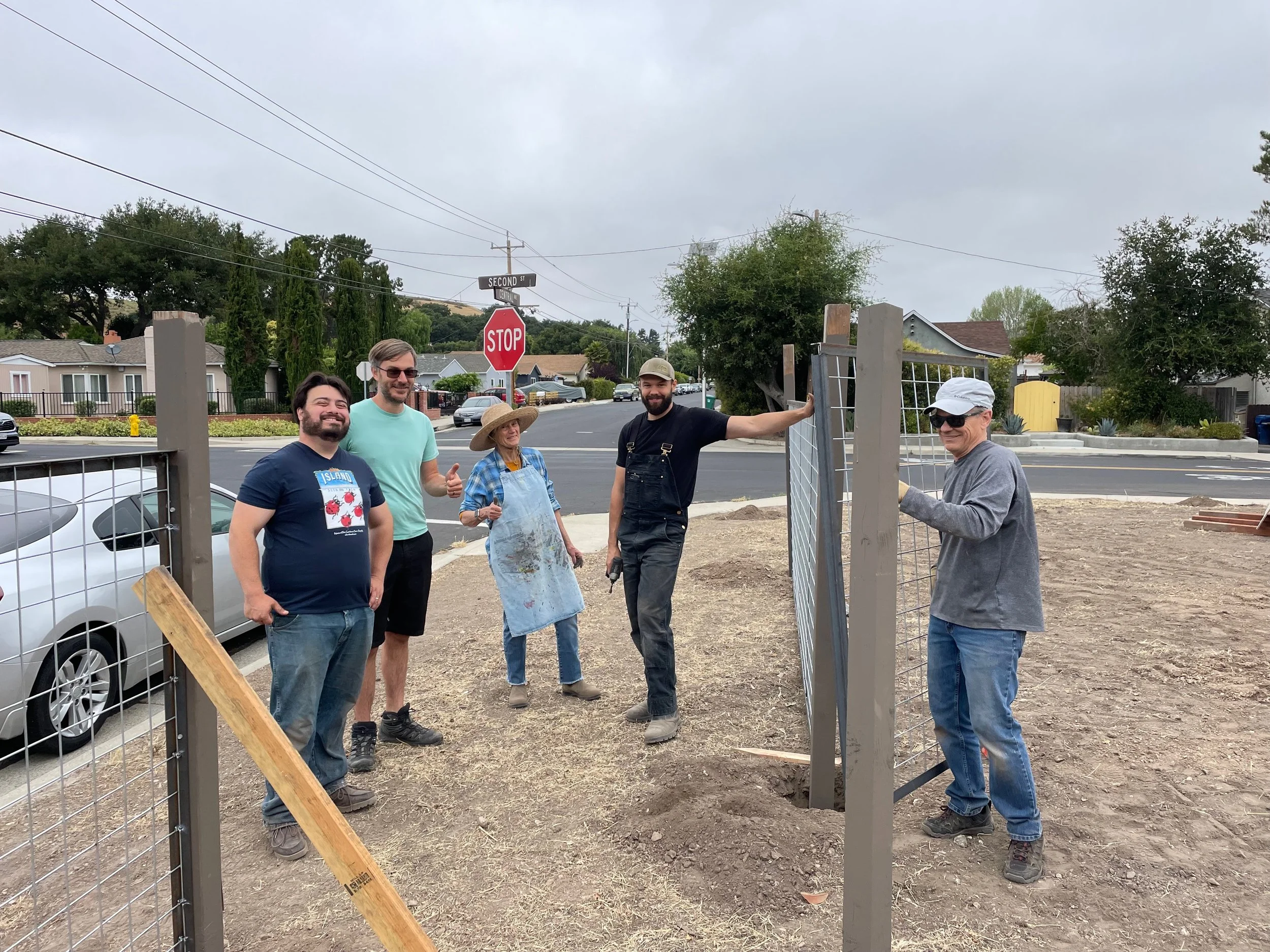 This week we started to put up the fence. We hope the community loves the design. We feel it is good looking while being cost-effective, and the materials are sustainable. Businesses and individuals can sponsor a panel of fence for a $500 tax-deductible donation. A plaque featuring your name or business will be permanently attached to the fence. If interested email info@buelltongarden.org.